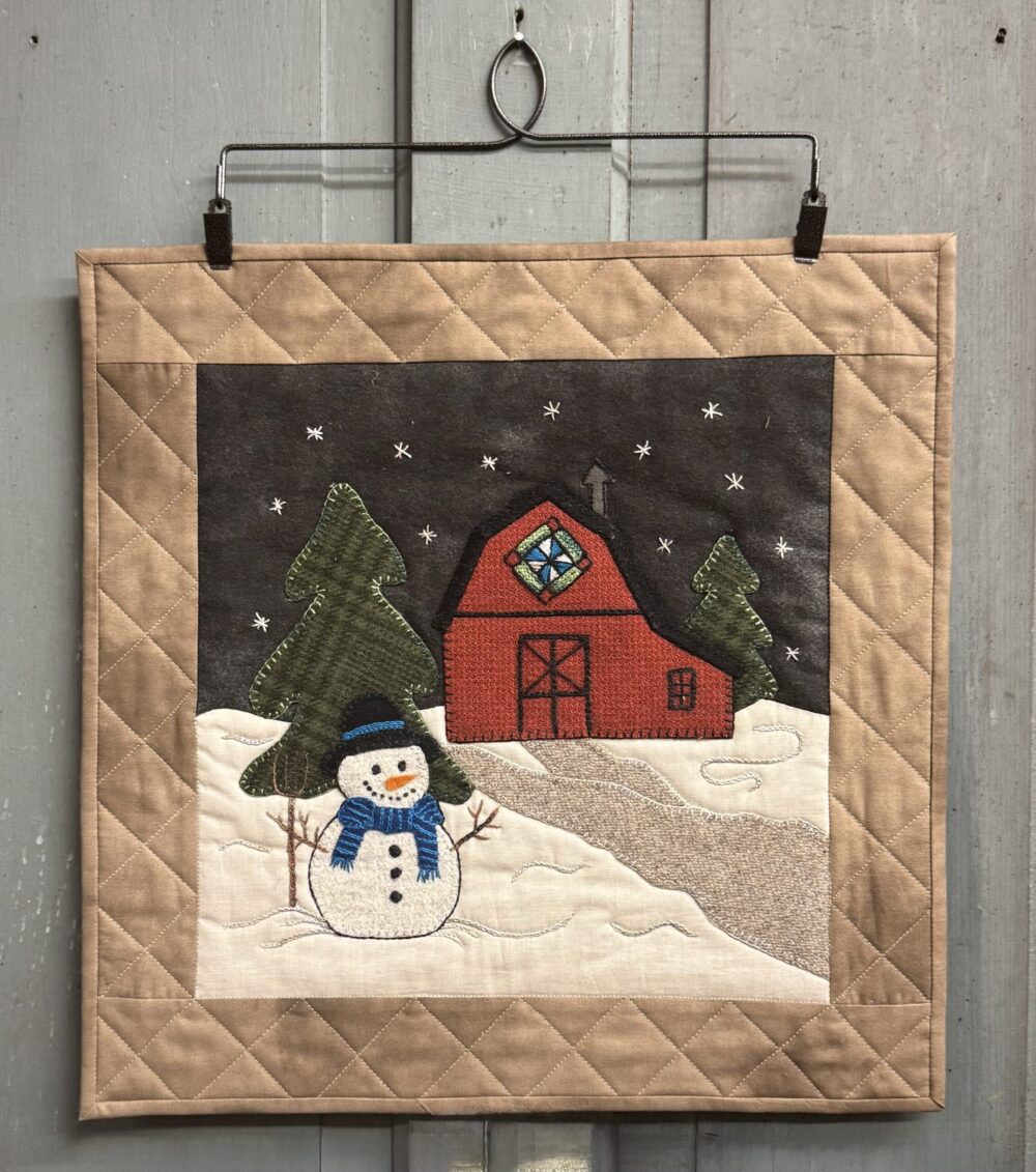 Join us for this mystery stitch-a-long put on by the Woolie Friends Stitchers! The event runs January 5 – March 30, 2026. Our pattern is available as a free download January 18 – 25, 2026. After this date, the pattern as well as the other options listed below, are available for purchase. Other block patterns and kits for the stitch-a-long may be downloaded or purchased by going to the other designers’ websites. Find more details on the informational flyer. Join the Woolie Friends Facebook Group for event news, share photos, how-to videos, and more. There are three videos below where Annette shares tips for adding the ground snow, attaching the elements to the block, and adding the barn roof. Be sure to watch all three helpful videos!