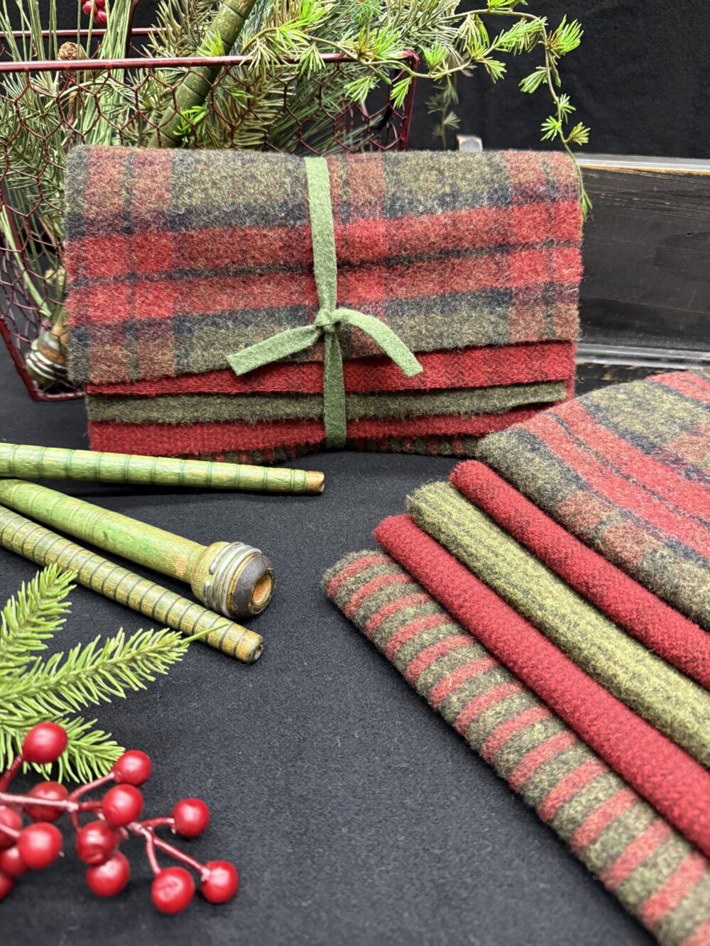 Wool Cakes have five pieces of 100% felted wool in a variety of textures. The pieces are approximately 9″ x 15″. These are great for rug hooking and wool applique.